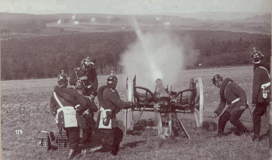 | The 7,7cm leichte Feld Kanone (l.F.K.) 96 a/A was a light field cannon adopted by the Feldartillerie (Field Artillery) in 1896. It was a conventional cannon, being a (slightly) modernized version of Krupp's leichte Feld Kanone 73. Unfortunately, it did not incorporate an effective recoil system other than the spade, requiring the cannon to be re-aimed after every round. In 1897 the French Army introduced their famous Canon de 75 modèle which immediately rendered the 7,7cm l.F.K.96 obsolete in all critical areas, such as rate of fire, accuracy, range, and protection as the 7,7cm l.F.K.96 had no shield. This led to an frantic re-arming of the Feldartillerie to a modern field cannon, which although different in every respect other than the calibre, was cleverly named the 7,7cm l.F.K. 96 n/A (neuer Art = new model). One important difference was that the 7,7cm l.F.K.96 a/A utilized separate ammunition where after the projectile was rammed home, a brass cartridge casing containing a set amount of propellant and the primer was inserted. 7,7cm leichte Feld Kanone (l.F.K.) a/A Data: