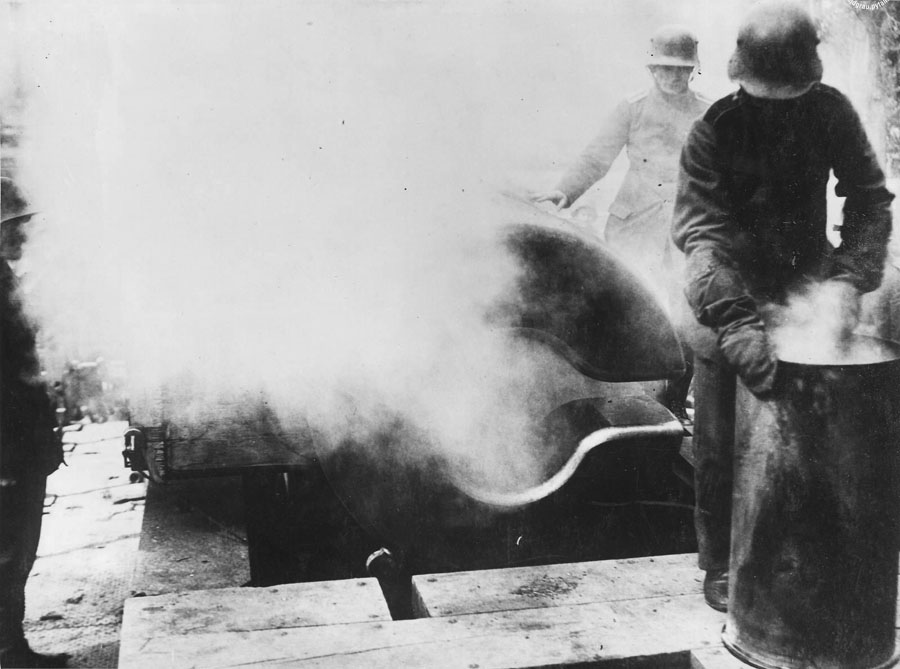 ![]() The magic moment... FEUER! | 743 kg (1,640 lbs) of high explosive hurls an incredible 38 km (24 miles) towards an Allied target. ![]() And there is my (very hot) 38 cm SK L/45 Max Cartridge Casing 95 years ago, now sitting at Patronenfabrik Fredericton Kanada. | |
