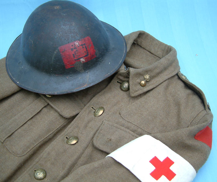 | Sapper Pearson's jacket and Brodie Steel Helmet Mark 1. | ||