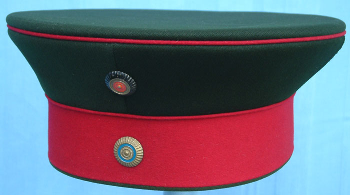 | Bayern Chevaulager private purchase Tellermütze for 1 Chevaulagers - Regt. Kaiser Nikolaus von Rußland, Nürnberg III. Armee Korps. This cap is superbly made and manufactured from the highest quality doeskin wool. This is by far, the highest quality Mannschaften cap I have ever seen. | ||