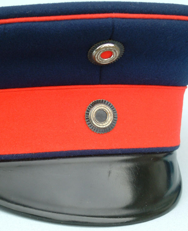 | Preußen Infanterie Officer's Schirmmütze. This high quality example is near mint and manufactured from superb doeskin wool. | ||