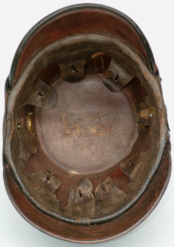 | When the Landwehr adopted the Pickelhaube 1881, the Landwehr Tschakos were retired from service, so this Tschako would have been originally Preußen Jäger or Train until it was replaced by a newer model. In 1914, old Tschakos were dusted off and issued to the Landsturm in order to meet the needs of mobilization. This example was upgraded in 1914 by removing the Preußen eagle Wappen and adding a Landwehr Wappen and Reichskokarde. In 1916 the old Tschakos were finally retired when the Landsturm finally adopted the Pickelhaube. | ||