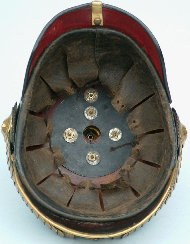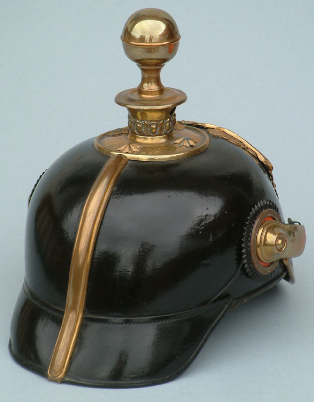| A side view showing the high dome typical for an early officer's helmet. | ||