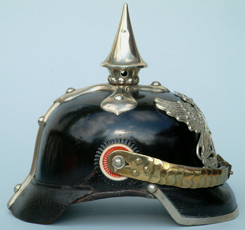 | As all Dragoner Regiments were entitled to wear a helmet Trichter and Haarbusch (parade plume) on parade, the spike top is removable to enable a Trichter to be mounted. The ball-pattern Perlring was worn by all enlisted personnel and does not indicate an NCO. |  | |