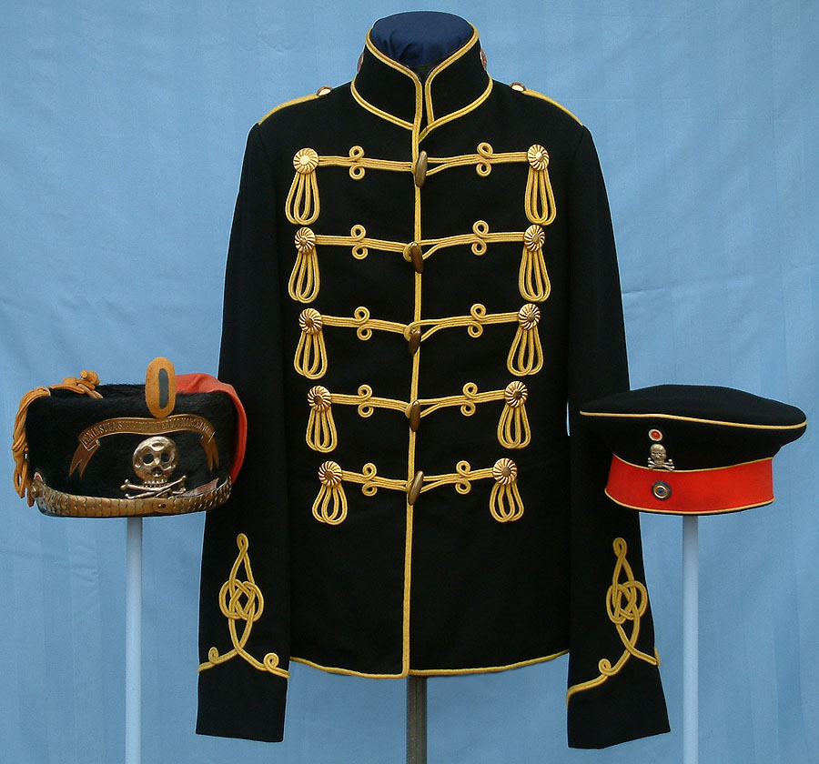 | A rare matching set: Braunschweigisches Husaren-Regt. Nr.17 Attila, Pelzmütze, and Krätzchen. To see the Attila click Here.To see the Krätzchen click Here. | ||