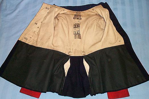 | The Waffenrock with matching Krätzchen (cap) and Pickelhaube. The piping and band on the Krätzchen are in the infantry facing color of red, while the fittings on the Pickelhaube match the color of the buttons on the Waffenrock. To see the Pickelhaube click Here. To see the Krätzchen click Here. | ||