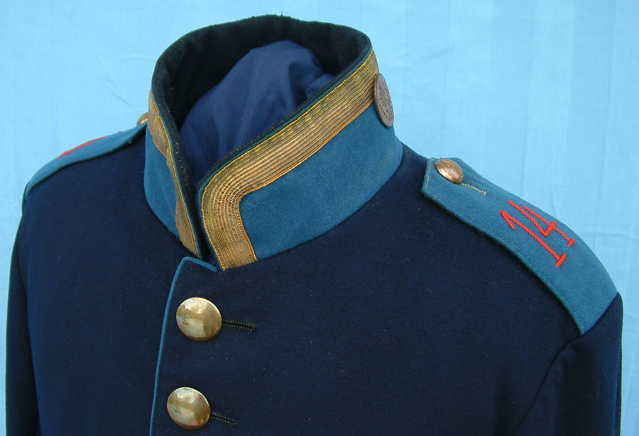 | The gilt collar and cuff NCO lace combined with the gilt collar buttons indicate a rank of Sergeant. | ||
