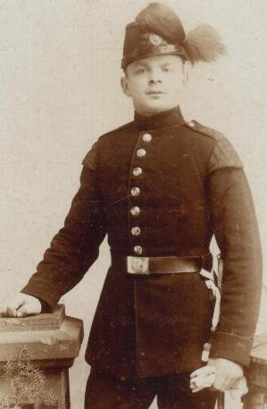 | A view of the collar and shoulder straps. The "Swallow's Nests" and Sachsen Jäger shoulder straps are clearly shown in this photograph. The Tresse on the "Swallow's Nests" is silver sewn to a green wool backing. The insignia is held onto the shoulder with corresponding "hook & eye" on the shoulder seam. The cyphers on the privately-purchased shoulders straps are cut from fine felt and separately sewn on with hand-embroidered details. Note the squared top unique to Sachsen shoulder straps. | ||