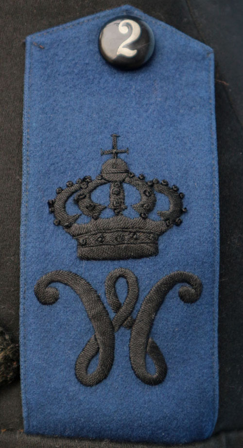 | The shoulder straps are superbly hand-embroidered with a massive crowned W of Duke Friedrich Wilhelm. The W cypher for William VIII was adopted in 1867 on the Polrock. It did not change for Prince Albert of Prussia, John Albert of Mecklenburg, or Ernest Augustus III.