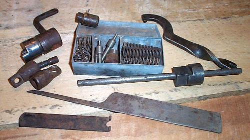 | A view of the tools, and a full spare parts and springs kit. | ||