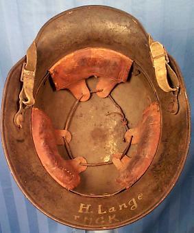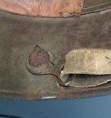 | The Model 1916 helmet was developed in 1915 to counter the effects of countless head wounds due to der Stellungskrieg (trench warfare). The helmets were first issued for field testing in Dec 1915 to the 1st Assault Battalion. The trials were so satisfactory that an initial issue of helmets was made by Jan 1916. Unlike the Allied helmets, the German helmet used a very high quality chromium-nickel steel and afforded superb protection to the neck and ears. The helmet weighed approximately 1 Kilogram (2.2 Lb.) and was issued in six sizes 60 to 70 in 2 cm increments. The size of the shell is stamped onto the rear of the apron. The size could also be determined by the two ventilation lugs on either side of the temple area. | ||