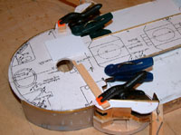Gluing the Upper Deck I had to fix the upper deck onto the Fore section of the superstructure before I could go any farther, so it was glued and clamped into place.