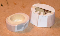 resin funnel top using the diameter of the Kommandoturm bottom, lower vision slits, and the upper vision slits. The frame was then filled with auto-body