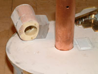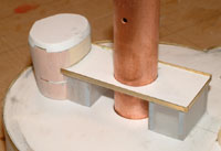 The ship's cranes will be built in a later stage, but the lower halves had to be built-in now. I used 13mm (1/2") copper pipe which matched the Pommern Shipyard