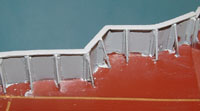 Damage Control My first thought was to smash it all with an ax, but like always, within the hour I was fixing the damage. After days of picking off the garbage Micro Mask, all the grey which leaked through had to be rubbed off with thinner which removed the semi-gloss of the decks and much of the brass edging decals. Lucky me. So, the entire deck was wet-sanded several times, sections repainted, and brass decals repaired or replaced. | | |