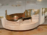 | Soldering 1.01 Using paper templates copied off the drawings, the boat deck 8,8cm gun platforms were cut from brass and soldered together. This gave me very thin, yet very strong gun platforms with sharp edges.