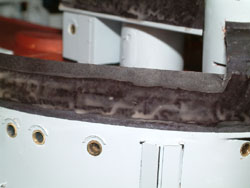 Cutting the Fold Once the front has dried and sucked down onto the railings, along the back between each stanchion the paper was cut for folding it over. If you do not cut the paper and try to do it all in one piece (trust me) it becomes extremely difficult to work with, the paper becomes very fragile and tears, you ruin all that work, and end up yelling in the workshop very loudly and scaring the dogs.