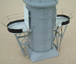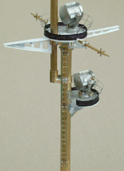 Mast Ladders Attached Here are PLM Marinedetails ladders going from the main tower 'crow's nest' up to the searchlight platforms, also not yet painted, and only one searchlight has been detailed. You can see how PLM Marinedetails' new ladders are perfectly straight and true. And strong! I am clumsy and typically smash into everything I make at least once, and when I did, the ladders did not bend a bit.