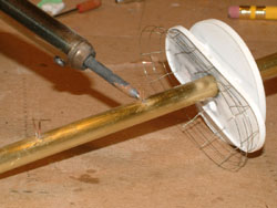 To attach the ladders, small brass rod was soldered into drilled holes on the main mast.