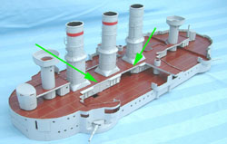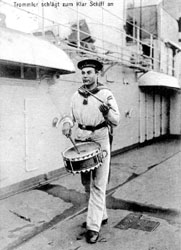 Laufgang (Gangways) As this period photo of a ship's drummer shows, on either side of the funnels on the upper deck over the air vent covers were heavy steel mesh Laufgang (gangways). I assume this was required as only Pommern had the large flared out supports at the funnel bases.