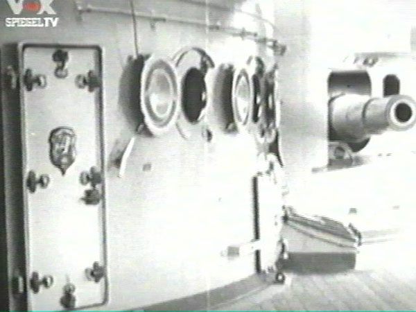 The Wrong Doors When I originally made the basic Aufbau (superstructure) back in in September 2006 (Part IV) I had used PLM Marinedetails' doors with three hinges. Sometime after, Friedrich Prinz sent me some stills (photos) of a short video on Pommern that was shown in Germany on Spiegel TV.