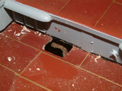 One of the openings on the deck was smaller than the others, so it had to be widened to match the other three. Unfortunately, right where the plastic box would slip in, there was a wooden station which formed the hull, so I sanded this with a motor tool until the box would fit. I noticed a few minutes later my work shop was filling with smoke (?) and realized that the grinding of the wooden station had caused a smouldering fire inside the hull! I had no choice, I had to pop the superstructure off and indeed there was a smouldering pile of hot sawdust from the grinding. if I had left, it could have easily caught fire and Pommern would have burned.