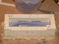 As the crane was an unusual shape, a two-piece mould would not work very well, so I made a one-piece mould and slit it up the bottom of the crane when set to pop out the master and the subsequent castings.