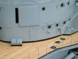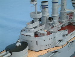 This concludes Part VIII Completing the Aufbau (Superstructure) on The S.M.S. Pommern. Below you will find 27 views of the completed superstructure on the hull, never to be removed again. Pommern looks very much like a battleship now! After viewing the photos below, click the "Next" link at the bottom of the page to return to the "How to Build a Battleship" home page.