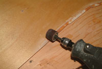 Lowering the edge Fortunately, the aircraft plywood was made of different colors laminated together. I was able to sand using a sanding drum on my hobby tool down to a certain depth, until a dark brown layer of wood was revealed. This made it relatively easy to do, but lots of dust and time consuming.