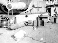 Chain Runs I am not sure what the actual name for these are, but there was another layer of deck planks that the anchor chains ride on. This photo from the construction of SMS Deutschland shows these runs which allows the chains to come out of the hull, loop around the chain winch, and then down to the bow or stern to the anchor. There were two on the bow, and one on the stern. This photo is of SMS Deutschland during construction.