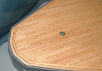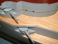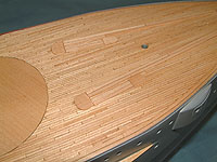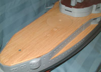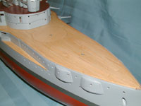 Here are several views of the completed deck. The screws holding the deck on will be covered by items such as the turrets and deck lights. Other items to complete the deck such as coal hatches, anchors & chains, anchor winches, flag staff, deck crane, tie-downs, etc. will be added in another chapter.