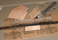 For planking, I needed a thin wood veneer with a light color and a very tight grain. I ordered samples of several woods from a wood veneer company in Ontario Canada and finally decided on curly maple. Many ship models in this scale have beautiful dark teak decks. However, sun and salt exposure combined with constant scrubbing by the crew, gave the decks a very light color. Curly maple is a hardwood with a nice, tight grain, and the right color for bleached wood.