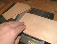 Cutting the Planks on the Proxxon I used my superb Proxxon Bench circular saw KS 115 to cut strips of veneer to 50mm in width. This width would be the length of the planks, as the actual deck planks on Pommern were 5 meters long. This ensured that all the planks would be the same length.