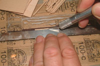 Cutting Planks With the strips of veneer laid onto a jig, each plank was cut using a clean hobby blade. Each plank had to be exactly the same, 2mm X 50mm to represent the actual planks which were 20cm X 5 meters. I cut planks every day for over a month, until I had 1100 cut.