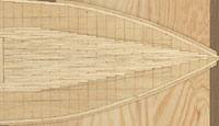 Laying the Center Planks The planks that ran the center of the deck had to be perfectly straight, or the deck planking would angle off, and would get worse the further I got from the center line. To make sure this would not happen, I used a ruler and took my time to glue the center planks on.