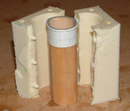 So Far, So Good After the second layer was dry, the two halves were carefully pried open, and the funnel master carefully removed. I now had the two halves of my mould, but now came time to make the top. |