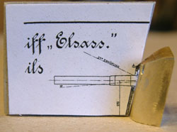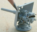 Cutting Level Another jig was made to sand the bottoms of the shields so they would sit on the gun at a slight angle, with the bottom of the shield level with the horizontal plane. Each shield was checked for the correct angle with the superb plans drawn by Lothar Wischmeyer of the SMS Elsass. Lothar's plans are of the older 8,8 cm SK L/30, but the shield angle would be similar to the Deutschland-Klasse 8,8 cm SK L/35.