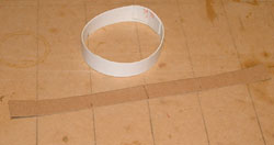 The Sides The side profile of the 28cm Geschützeturm was so odd, that after several unsuccessful attempts, I finally had to make a template from paper so I could cut a strip of plastic in the correct shape. |