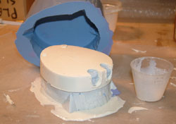 First Casting This was a "squish" mold, meaning that resin is poured in and the two halves squished together. Once set, the sides are pried apart and I had a casted Geschützeturm. They both required a lot of cleaning up, but it was a lot easier than making two identical Geschützeturme from scratch.