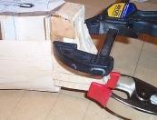Fits Like a Glove The bow was sanded to shape with a belt-sander and a sanding drum on my hand drill. The bow proved to be quite difficult to sand and shape, as they call it "hardwood" for a reason. I made the template from tracing the plans and sanded the bow until it fit.