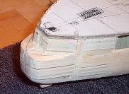 An Unexpected Development At this stage, the hull was looking quite good. Then in the mail, I received from my friend Peter in Germany the "Holy Grail" that had sought for this project. A copy of shipyard drawings of the SMS Deutschland made in May 1910 by R.M.A. Plankammer B III. Exact outlines of the hull, super structure, battery decks upper and lower, propeller and rudder layouts, ships boats, top and side views, with the accuracy of a professional drafting company. They were everything a model builder dreams of. The thumbnail to the right contains more than one view of these drawings. |