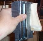 A Contour-Guage I bought a contour-gauge to make sure that each side was exactly the same. This simple tool works perfectly and was the best $10 I spent on this project. It was also very useful to check symmetry in scores of other locations.