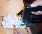 Losing Some Weight It seems that normal procedure according to the books and articles I found, is to cut the center out of each hull station to save some weight. Not being one to argue with tradition, I drilled a pilot hole in each station and use the jig saw to remove the center portion.