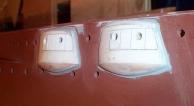 Back to the Hull Sponsons Now it was time to glue the hull sponsons on with epoxy, and fair them into the hull. Once on, the portholes were drilled. |