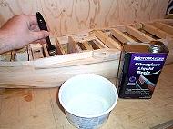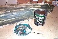 Coating the Hull Interior Having completed the basic hull shape in Part I, the entire inside was coated in a thick layer of liquid fiberglass resin to help it keep its shape. I almost gassed myself with the fumes and would recommend doing this outside! |