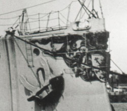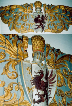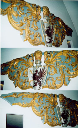 For your interest, here are some photos I took of the actual Bugzier removed from Pommern on display at the German Naval Memorial, Laboe. The photos do not give an indication of size, but it is huge, intricate, and amazingly beautiful. I admit that it was a thrill, but at the same time very sad to see this part of the actual Pommern and know that the crew was still at sea. |