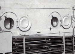 Bullauge 'Bullauge' is the German word for 'porthole'. To make portholes, most ship modelers take the easy route by filling brass tube with clear resin, and cutting the portholes which results in the glass being flush with the exterior. Easy, but not correct. Actual portholes on ships have an outside edge that sits flush with the ship's exterior, and the glass itself is set back a small distance as you can see in this photo.