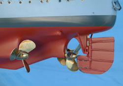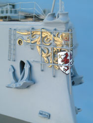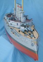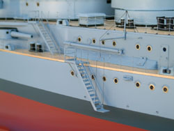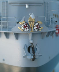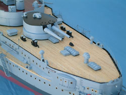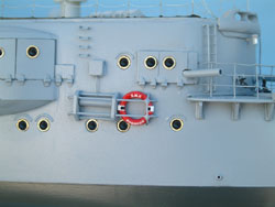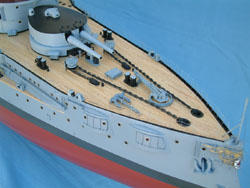 Here are several views of the completed hull. Pommern is looking more and more like a battleship. Please note that the Deutschland plans show an anchor chain running along the stern deck and going over the Heckspoiler to the stern anchor, but all the period photos show no chain going over the Heckspoiler. Friedrich Prinz explained to me, that the stern anchor was chained in place, and the crew would only run chain along the deck to use it, if they needed it.
