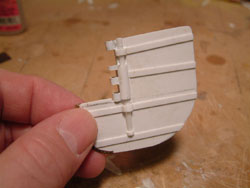 Side Ribs The ribbing on the sides was added onto the four base strips and sanded down to a taper at the edges. Finally, the hinges were blended together using Tamiya Polyester Putty. |