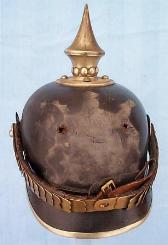 The first step is to examine the helmet for integrity to ensure that it is not too fragile for cleaning. In this example, the helmet appeared to be solid and in very good shape. Having confirmed that the helmet will take the stresses of cleaning, the next step is to remove only those fittings that are easily removable. This includes any parts that are held on with nuts, bolts, screws, or leather wedges. Do not remove parts that require you to bend metal prongs. The stress of bending metal which has remained dormant for 90 years or more will almost certainly result in one or more breaking. Quite often, only carefully removing the front helmet plate for cleaning will suffice.